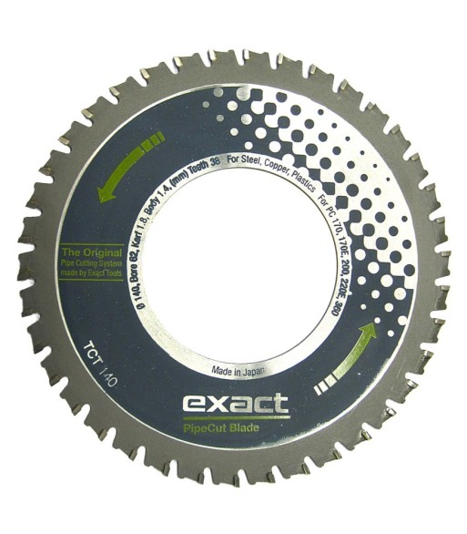 Firma Exact oferuje szeroki zakres specjalnie zaprojektowanych tarcz przeznacznych do przecinarek Exact PipeCut. Wysokiej jakości tarcze zaprojektowane zostały do różnych zastosowań I różnych typów przecinarek PipeCut. Posiadając właściwą tarczę możesz osiągnąć optymalne rezultaty cięcia.TCT 140: Tarcze ogólnego zastosowania z uzębieniem z węglika wolframu. Odpowiednie do cięcia stali, miedzi, aluminium oraz tworzyw sztucznych. Tarcze TCT z uzębieniem z węglika wolframu mogą być ponownie ostrzone kilkukrotnie. Poprzez ostrzenie tarcze mogą uzyskać wydajność zbliżoną do nowych tarcz.Tarcze o ilości 38 zębów stanowią zrównoważony kompromis między ceną, a jakością.ZESTAW ZAWIERA: 1 x tarcza tnąca EXACT TCT 140 mm - 38z.