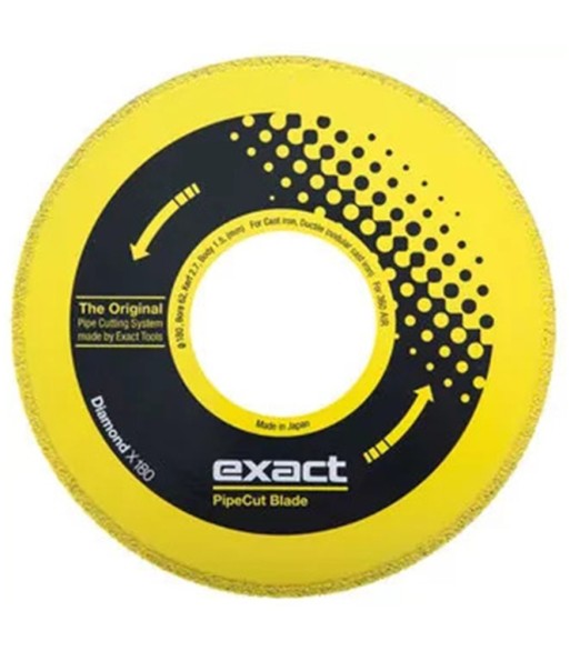 Wysokiej jakości, produkowania w Japonii, tarcza diamentowa firmy Exact Tools Oy.Diamond X180 to tarcze diamentowe Przeznaczone do ciężkich zastosowań. Tarcze Diamond X zaprojektowane zostały głównie do cięcia rur żeliwnych oraz rur z żeliwa sferoidalnego. Tarcza może być używana również do cięcia włókna szklanego oraz żeliwa z warstwą betonu.Średnica zewnętrzna tarczy to 180mm, a grubość ośrodka 1,5. Rzaz tarczy wynosi 2,7mmZESTAW ZAWIERA: 1 x Piła diamentowa do cięcia żeliwa Exact DIAMOND X180mm.