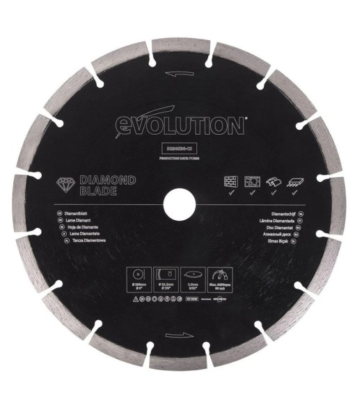 Tarcza diamentowa segmentowa Evolution Power Tools D230SEG-CS 230mm to wytrzymałe narzędzie umożliwiające cięcie wszystkich rodzajów materiałów budowlanych, w tym betonu zbrojonego ze stalowymi prętami zbrojeniowymi.Tarcza diamentowa segmentowa Evolution D230SEG-CS 230mm jest w pełni kompatybilna z elektryczną piła do betonu R230DCT.Wysokiej jakości diamentowy segment zapewnia uzyskanie dużej wydajności cięcia.Tarcza pozwala na łatwe cięcie przy zachowaniu dużej wydajności zarówno twardego muru, jak również twardej cegły, kostki brukowej, kamienia, betonu i betonu zbrojonego stalą.tarcza jest podstawowym wyborem dla wykonawców prowadzących prace budowlane. SPECYFIKACJA:Rodzaj krawędzi: segmentowa Średnica tarczy: 230 mmSzerokość segmentu: 2,5 mmGrubość tarczy: 2 mmŚrednica otworu mocującego: 22,2 mmWysokość segmentu: 9,5 mmDopuszczalne obroty: 6650 obr./minSymbol: EVO-D230SEG-CSZESTAW ZAWIERA: 1 x Tarcza diamentowa segmentowa Evolution D230SEG-CS 230mm do cięcia materiałów budowlanych (opakowanie blister).