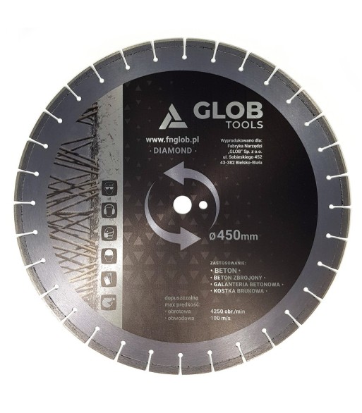 Specjalnie dobrana mieszanka segmentu diamentowego zapewnia skuteczne i szybkie cięcie przez długi czas. Bardzo wysoka wytrzymałość i odporność na pracę w trudnych warunkach.Idealnie przystosowana do przecinarek spalinowych. Tarcza spawana laserowo do cięcia na sucho i na mokro. Zastosowanie:- Beton- Beton zbrojony- Kostka brukowa- Galanteria betonowaDopuszczalna prędkość obwodowa dla tarczy o średnicy 230 mm - 63 m/sDopuszczalna prędkość obwodowa dla tarcz o średnicach: 300, 350, 400 mm - 100 m/sMax dopuszczalna prędkość obrotowa dla tarcz:- 230 mm - 6600 obr/min - 300 mm - 4010 obr/min - 350 mm - 3440 obr/min - 400 mm - 3010 obr/min SPECYFIKACJA:Symbol: GLOB-DIAMZESTAW ZAWIERA: 1 x tarcza diamentowa GLOB Beton/Beton zbrojony zgodnie z wybraną średnicąOpakowanie karton