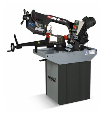 FEMI N251DA XL to przecinarka Taśmowea pracująca w trybie półautomatycznym. Urządzenie wyposażone zostało w 3-fazowy wysokowydajny silnik pracujący z dwiema prędkościami. Zarówno korpus jak i imadło wykonane są z wytrzymałego odlewu żeliwa. Opadanie ramienia przecinarki regulowane jest płynnie przy wykorzystaniu cylindra hydraulicznego. Model FEMI N251DA XL wyposażony został we wskaźnik prawidłowego poziomu naciągu taśmy i jest regulowany za pomocą śruby z uchwytami. Niewątpliwie dużą zaletą urządzenia jest stabilna konstrukcja zapewniająca komfortową pracę nawet podczas cięcia dużych elementów. Zakres cięcia przecinarki wynosi do 225mm.Urządzenie spełnia wszystkie restrykcyjne wymagania europejskich norm bezpieczeństwa. Wyposażone zostało w dodatkowy przycisk umożliwiający wyłączenie lub wyłączenie przecinarki za pomocą wbudowanego przycisku znajdującego się na rękojeści. Posiada bardzo czytelny panel sterujący z dodatkową lampką bezpieczeństwa, która sygnalizuje o tym, że urządzenie jest włączone.ZESTAW ZAWIERA: 1 x przecinarka Taśmowea Femi N251 DA XL ze zintegrowanym systemem chłodzenia,1 x stalowa podstawa,1 x regulowany ogranicznik cięcia o długości 500 mm,1 x piła Taśmowea o wymiarze 2480 X 27 X 0,9 mm, t=6/10,1 x podstawa pod przecinarkę ze stali nierdzewnej,1 x instrukcja obsługi w języku polskim,1 x gwarancja producenta (12 miesięcy FAKTURA VAT / 24 miesiące paragon).