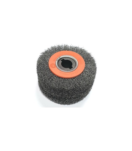 Szczotka do postarzania drewna z drutu stalowego, falowanego o szerokości 48mm, dopasowana do pracy ze szlifierkami kątowymi (dowolnego producenta) wyposażonymi w system płynnej regulacji prędkości obrotowej.Mocowanie szczotki na trzpień 19mm przykręcany do wrzeciona szlifierki kątowej (szczotka nie zawiera trzpienia).Bezwzględnie podczas pracy należy stosować osłonę, która jest częścią wyposażenia szlifierki kątowej.Uwaga: W zestawie nie znajduje się szlifierka.Maksymalna prędkość obrotowa z jaką mogą pracować szczotki to ok 4500 obr./minZalecana cykliczna zmiana kierunku pracy (obrócenie ściernicy) w celu wyeliminowania nadmiernego wygięcia drutów w jedną stronę.ZESTAW ZAWIERA: 1 x Szczotka tarczowa fi 100x48mm z drutu stalowego falowanego z otworem zabierakowym fi 19mm