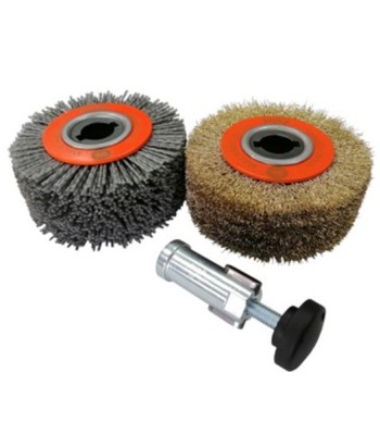 ZESTAW ZAWIERA1 x trzpień V1 do szczotki fi 100 x 50 mm,1 x szczotka z drutu mosiądzowanego fi 100 x 48 mm,1 x szczotka z nylonu P80 fi 100 x 48 mm.