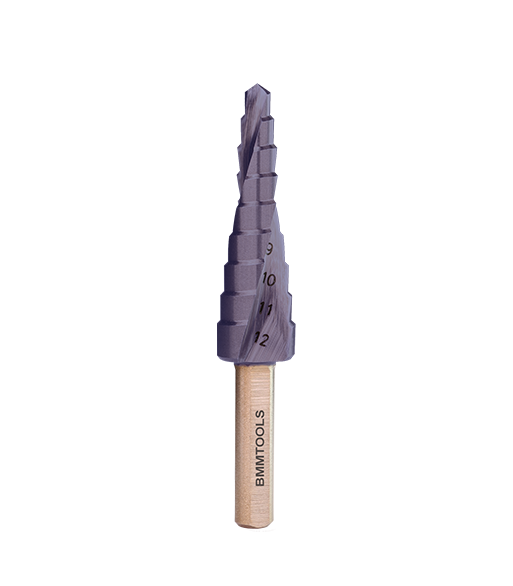 Wiertło wielostopniowe SPIRALNE 4-12 mm x 9 HSSCo5% TiAlN