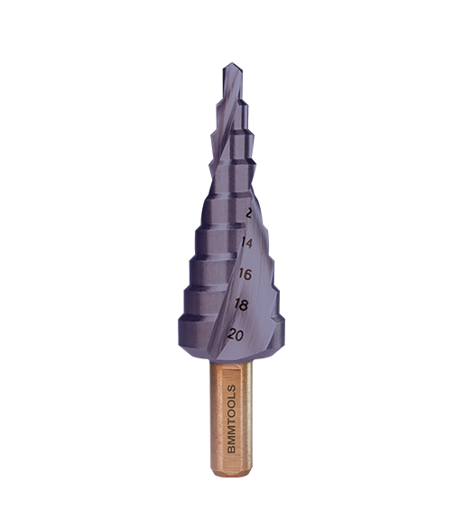 Wiertło wielostopniowe SPIRALNE 4-20 mm x 9 HSSCo5% TiAlN