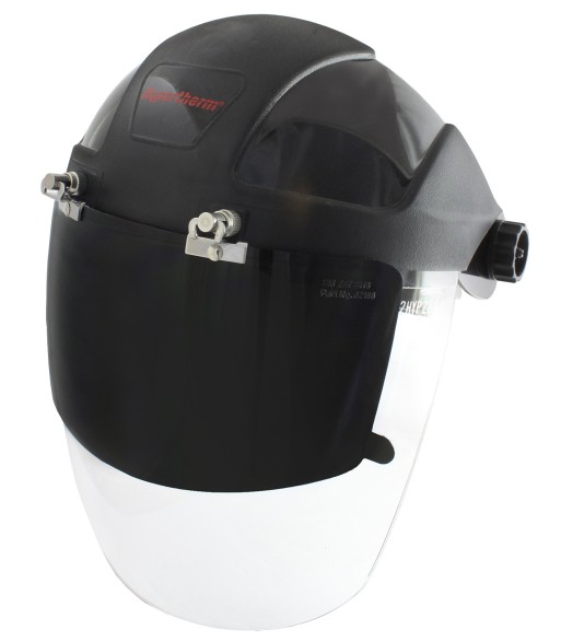 Wysokiej jakości osłona do cięcia plazmowego, przeznaczona do zapewnienia ochrony oczu i twarzy przed iskrami, rozpryskami i szkodliwym promieniowaniem, powstającymi podczas prac związanych z cięciem plazmowym.