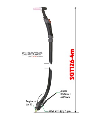 SGT26 FLEX 4m z giętkim palnikiem, przeznaczony do spawania metodą TIG.